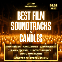 Ein magisches Konzert im Schein tausender Kerzen: Best Film Soundtracks & Candles lädt zu einer sinnlichen Reise durch Emotionen, Musik und Film-Erinnerungen ein. In einzigartigen Arrangements für Klavier und Cello erklingen bekannte Filmmelodien von Yann Tiersen, Hans Zimmer, John Williams und Ennio Morricone – ein stimmungsvoller Abend voller Klang, Licht und Gänsehaut pur.